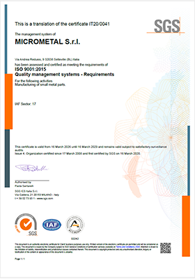 Micrometal as part of its business development plan, it has implemented an environmental management system with reference to ISO 14001 standard, obtaining in December 2018 the environmental certification by the accredited institution SGS.
